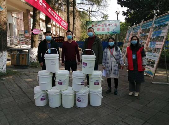 2020年1月12日下午三点,在了解到东兴区新江街道缺乏消毒物资时,民建内江市食品支部会员、内江市东兴区德恒昇商贸有限公司法人代表黄贵圣为新江街道送去了价值3000多元的11桶84消毒液,共计440斤。“我知道现在是特殊时期,消毒液特别难找,”黄贵圣说到,“这些消毒液是通过朋友的渠道购买的,在疫情面前,我也想做点事帮助大家。”他不知道这朴实的一句话背后,捐赠的这11桶消毒液足够街道十个社区用上好几天,消毒多少地方了。街道办事处主任黄波和副主任陈伟对黄贵圣表示衷心的感谢,并告诉他,一定将这些物资快速的分发到各个社区负责人手里。