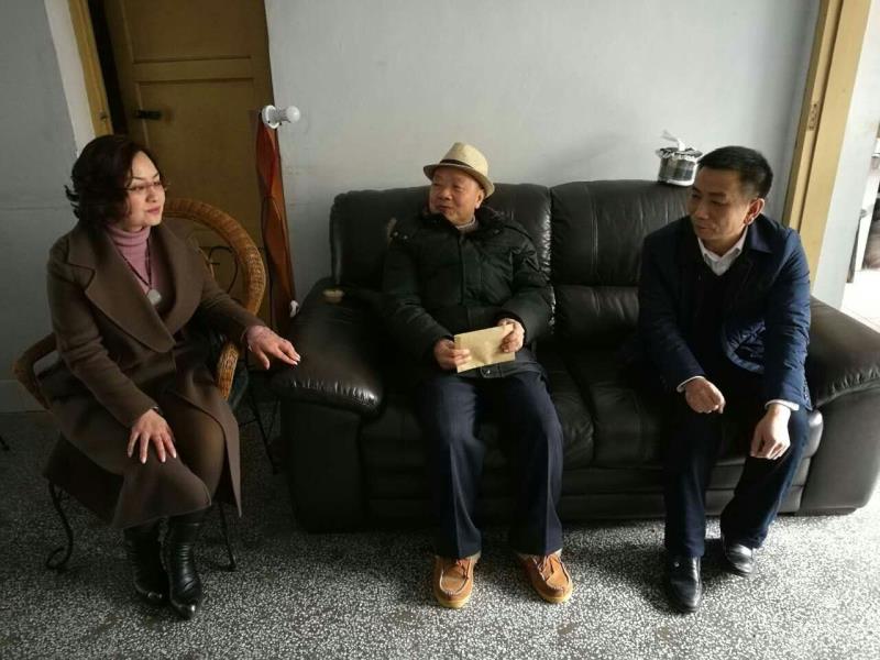 为确保内江民建老领导、老会员欢度温暖祥和的春节。2017年1月22日到25日,民建内江市委开展慰问活动,为民建市委老领导、老领导遗孀、退休班子成员、2015年民建省委温暖工程慰问对象及年龄在80周岁以上且会龄在30周年以上会员等同志,送去节日的祝福。主委徐进才率秘书长李梅等前往有关同志住所,同他们亲切交谈,关切询问他们的身体状况、家庭和生活情况,感谢他们为内江民建事业打下的坚实基础,叮嘱他们保养好身体,祝愿他们健康长寿、阖家幸福。(严梅)