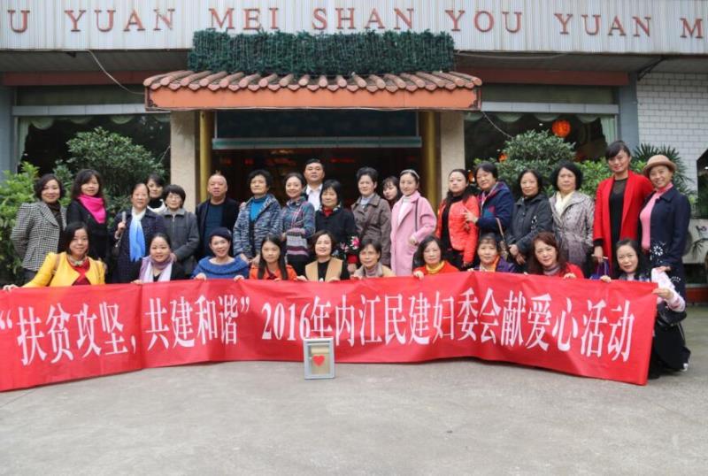 2016年11月18日上午,民建内江市委妇委会在梅山公园举行了“扶贫攻坚,共建和谐”2016年献爱心活动。内江民建市委副主委周忠勇、秘书长李梅、妇委会主任雷英等出席活动,参加活动的还有各支部妇女会员,邀请的爱心会员企业代表等。