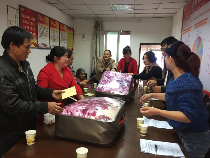 11月18日下午,周忠勇、李梅、民建妇委会组成人员代表上午献爱心的民建妇女会员们,赴内江市东兴区新店乡慰问部分困难群众。周忠勇在困难群众见面会上,鼓励贫困户树立信心,在社会的各界的帮扶下,稳定收入来源,争取早日脱贫。活动现场,还给参加活动的困难户每人赠送了一床毛毯和500元慰问金。