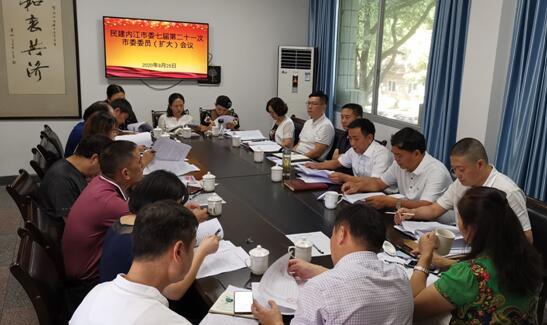 8月25日,民建内江市委召开七届第二十一次市委委员(扩大)会议,民建内江市委主委、市政协副主席徐进才主持会议,中共内江市委统战部机关党委书记张仕能应邀莅会指导。民建市委委员、不是市委委员的支部负责人、专委会负责人及民建市委机关干部20余人参加会议。