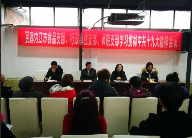 2017年12月15日,民建内江市食品支部、行政事业支部以及师院支部联合召开深入学习贯彻党的十九大精神组织生活会。会议由食品支部主委赵树铨主持,民建内江市委秘书长李梅出席会议并领学,三个支部的会员参加会议。