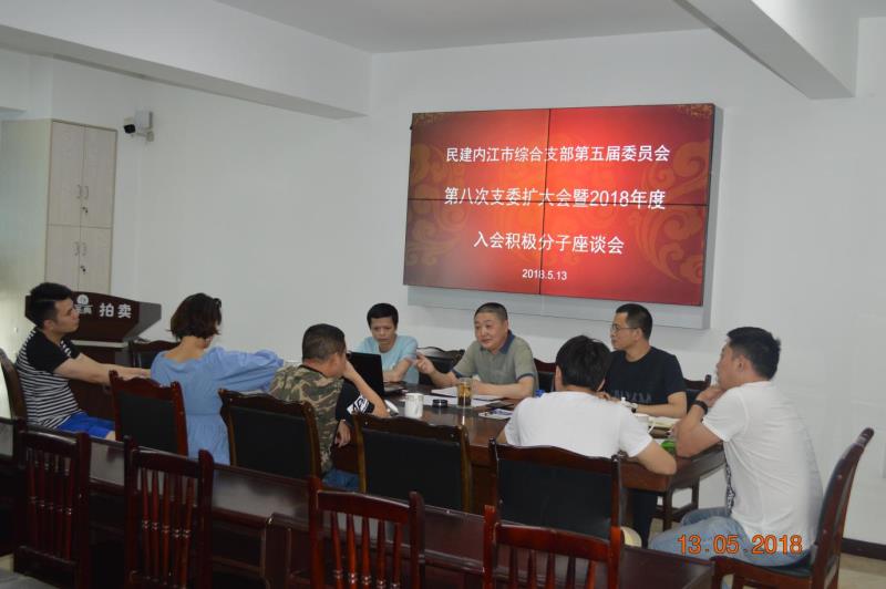 2018年5月13日下午4时,民建内江市综合支部五届八次支委扩大会暨2018年度入会积极分子座谈会在内江融通企业清算事务所多功能会议室召开。民建内江市委副主委、综合支部主委官忠全,民建内江市综合支部委员、部分支部会员和2018年度入会积极分子参加会议,本次会议由支部委员郑常伟主持。