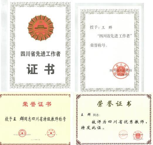 (王群老师部分获奖证书)