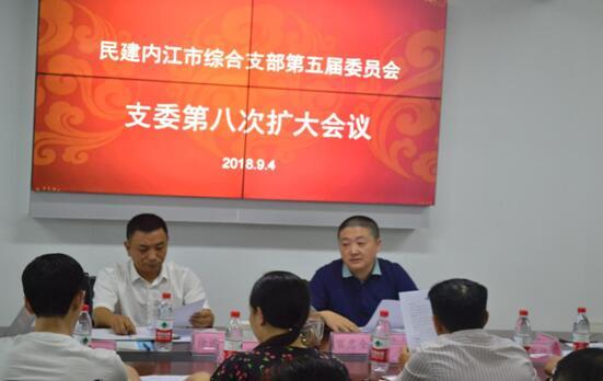 2018年9月4日,民建内江市综合支部五届八次支委扩大会议在会员企业内江融通企业清算事务所多功能会议室举行,支部在家支委及4个活动小组召集人、部分骨干会员共21人参加会议。民建内江市委主委、市政协副主席徐进才到会指导。会议由民建内江市委副主委、综合支部主委官忠全主持。
