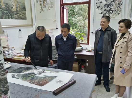 罗官生系民建百货支部会员、喻培伦将军纪念馆馆长,是内江市知名画家,以画虎著称,作品多次参加各类书画展览,出版有《从芭蕉井出发》的个人画集。在走访过程中,罗官生还现场挥毫,创作了《峨眉胜景》图。郁郁葱葱的树木、巍峨的群峰,描绘了祖国的大好河山,展现出画家的深厚的绘画功底。