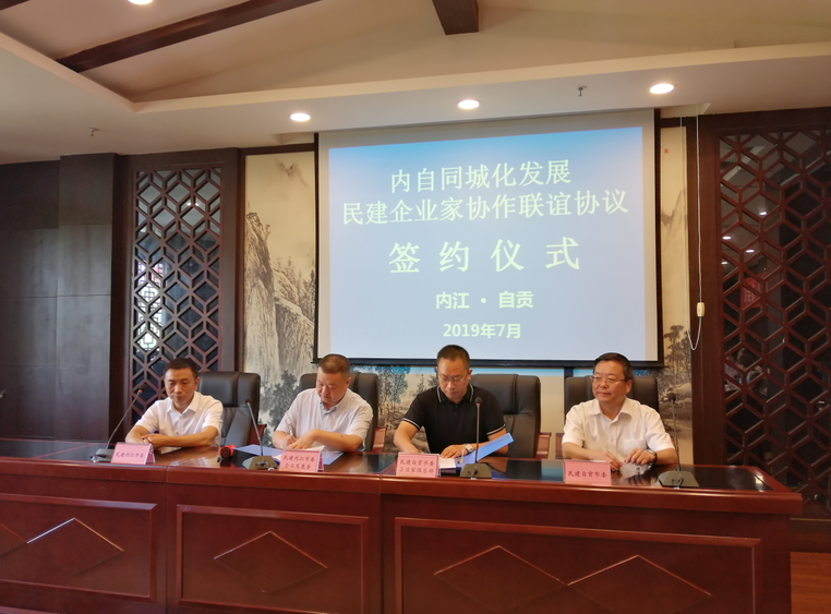 2019年7月26日,民建内江市委主委、内江市政协副主席徐进才率民建市委委员、企业发展委成员、部分优秀企业家等赴自贡市,参加与民建自贡市委联合召开的内自同城化发展民建企业家协作联谊会第一次会议。民建内江市委副主委官忠全、秘书长李梅等领导陪同参会。民建自贡市委主委、自贡市政协副主席王孝谦、中共自贡市委统战部常务副部长丁琴等领导出席会议。