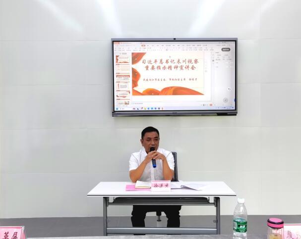 2023年8月22日,民建内江市委在民建内江市高新总支部“会员之家”召开习近平总书记来川视察重要指示精神专题宣讲会。民建内江市委主委、市政协副主席徐进才作宣讲,民建内江市委专职副主委潘容,秘书长严梅,民建内江市各总支部、支部主委及骨干会员代表,民建市委机关干部等近30人参加。