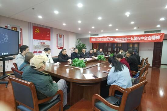 会上,郑常伟传达了中共十九届五中全会的重要会议精神,领学了《中共中央关于制定国民经济和社会发展第十四个五年规划和二〇三五年远景目标的建议》等相关重要文件。官忠全指出,今年综合总支的成功创建让支部的发展进入了一个要求更高的阶段,总支要以十九届五中全会精神为指引,加强会员的思想建设,增强会内凝聚力,提升参政议政能力。