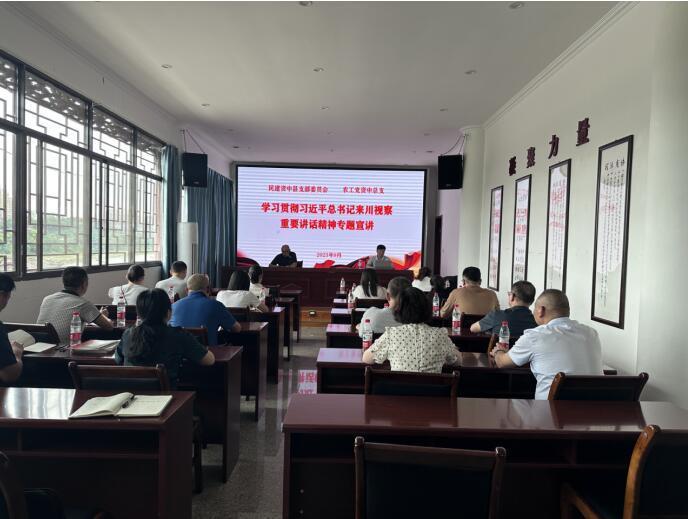 为推动“凝心铸魂强根基、团结奋进新征程”主题教育走深走实,2023年9月21日,民建内江市资中县支部联合农工党资中县总支部举办了学习贯彻习近平总书记来川视察重要指示精神专题会议。会议邀请到中共资中县委党校黄文老师作专题宣讲。