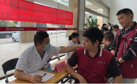 2024年6月4日,内江市卫健委团工委、内江快递行业团工委、内江市中医医院共同开展了“健康关爱‘暖蜂行动’”义诊志愿活动。民建内江市医药支部委员、内江市中医医院脊柱骨二科医生王明龙积极参加义诊志愿活动,跟随义诊志愿队伍来到“集世迈”集团,为物流行业工作人员进行义诊。