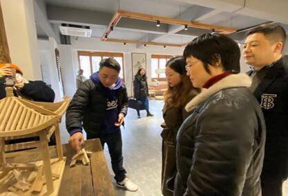 文化支部活动阵地设立在会员企业榫卯文创中心内,指导组一行参观了阵地文化墙和榫卯展厅。文化支部主委周勇详细介绍了文化墙上展示的支部基本情况、制度建设、支部活动、社会服务等内容。文化支部会员、市级非物质文化遗产蜀南榫卯技艺第四代传承人张建对展厅的榫卯工艺进行了介绍。