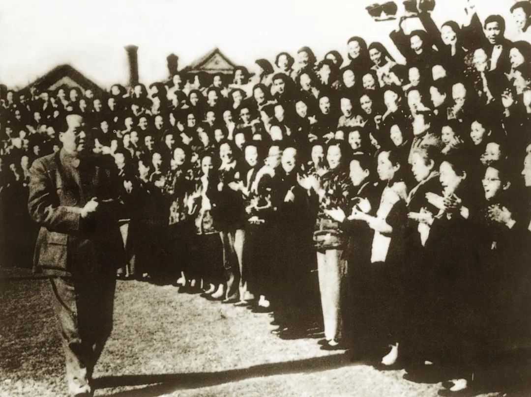 1956年4月,毛泽东主席接见全国工商业者家属和女工商业者代表会议代表及港澳工商界妇女观光团全体人员。