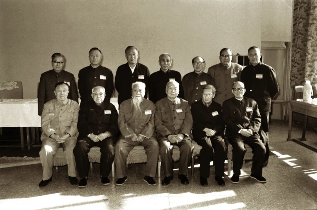 1983年11月18日,民建第四届中央委员会第一次全体会议选举产生的新一届领导人员(部分)合影。前排左起:孙起孟、孙晓村、胡厥文、胡子昂、浦洁修(女)、汤元炳。后排左起:冯梯云、万国权、陈遂衡、吴志超、