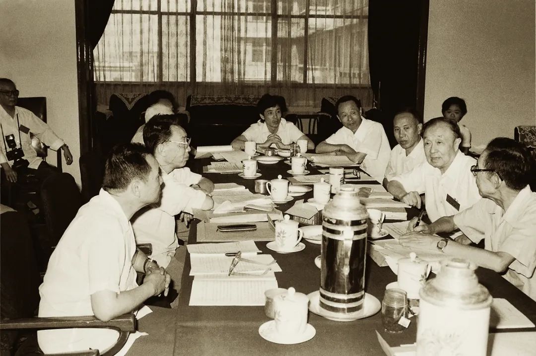 1988年6月18日,孙起孟(右二)在民建第五次全国代表大会分组会上发言。