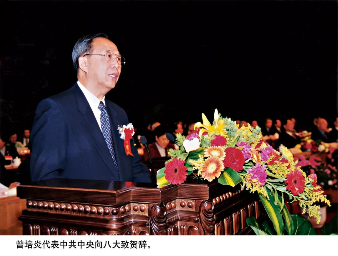 曾培炎宣读了中共中央的贺词。贺词指出,过去的五年,民建坚持以邓小平理论为指导,认真学习贯彻 “ 三个代表” 重要思想,切实履行参政议政、民主监督的职能,紧密围绕改革、发展、稳定的大局,就修改宪法、制订“ 十五” 计划、西部大开发、经济结构调整、国有企业改革、金融改革、社会保障体系建设、区域经济发展等重大问题,提出了一些很好的建议,社会服务工作取得显著成效,广大成员的政治素质明显提高,各级组织活力进一步增强。