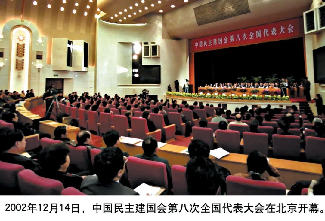 2002年12月14日至18日,民建第八次全国代表大会在北京举行。这是民建进入新世纪以后首次召开的全国代表大会。出席会议的代表有 580 名,来自 326 个地方组织,代表 89139 名会员。