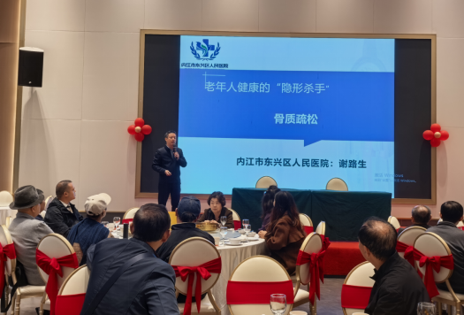 来自内江市东兴区人民医院的副院长谢路生,以“老年人健康的‘隐形杀手’——骨质疏松”为主题,为老龄会员作了专题健康知识讲座。他用通俗易懂的语言,从骨科小常识,临床表现及症状,骨质疏松的危害因素、预防和治疗等六个方面讲授了骨质疏松的相关知识,帮助老人们树立科学的健康观念,掌握实用的运动技巧。老人们认真聆听,纷纷表示讲座内容很实用,收获满满。
